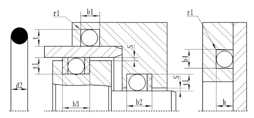 Ang diagram ng eskematiko ng uka ng encapsulated O-ring