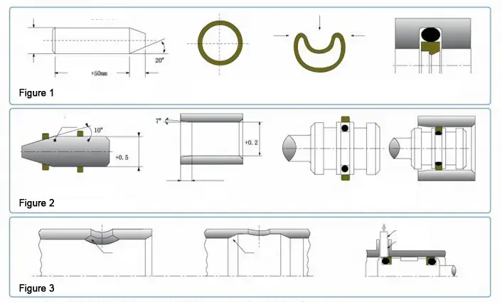 4. Mga thread, gabay na singsing ng mga grooves, atbp ay dapat na sakop, dahil ang selyo ay hindi maaaring itulak sa pamamagitan ng mga grooves, drilled hole o magaspang na ibabaw.