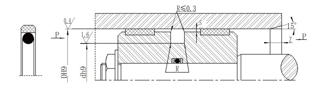 Ang Square Combination Seal (Glyd Ring Seal) para sa mga piston (bore) ay binubuo ng isang singsing na may hugis-parihaba na ptfe at isang O-singsing. Ito ay angkop para sa pag -sealing ng bidirectional pressure sa gantimpala ng haydroliko na paggalaw. Ang O-ring ay nagbibigay ng lakas ng radial at bayad para sa seal singsing. Karaniwang ginagamit ito kasabay ng isang singsing na gabay. Para sa mga cylinder diameters na mas mababa sa 30mm, dapat gamitin ang isang split (bukas) na disenyo ng uka.