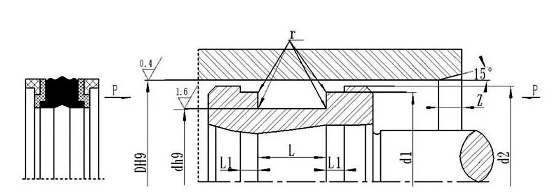 4. Ang espesyal na geometry ng elemento ng pagbubuklod ng NBR ay pinipigilan ang pagbaluktot sa uka sa panahon ng pag -install.