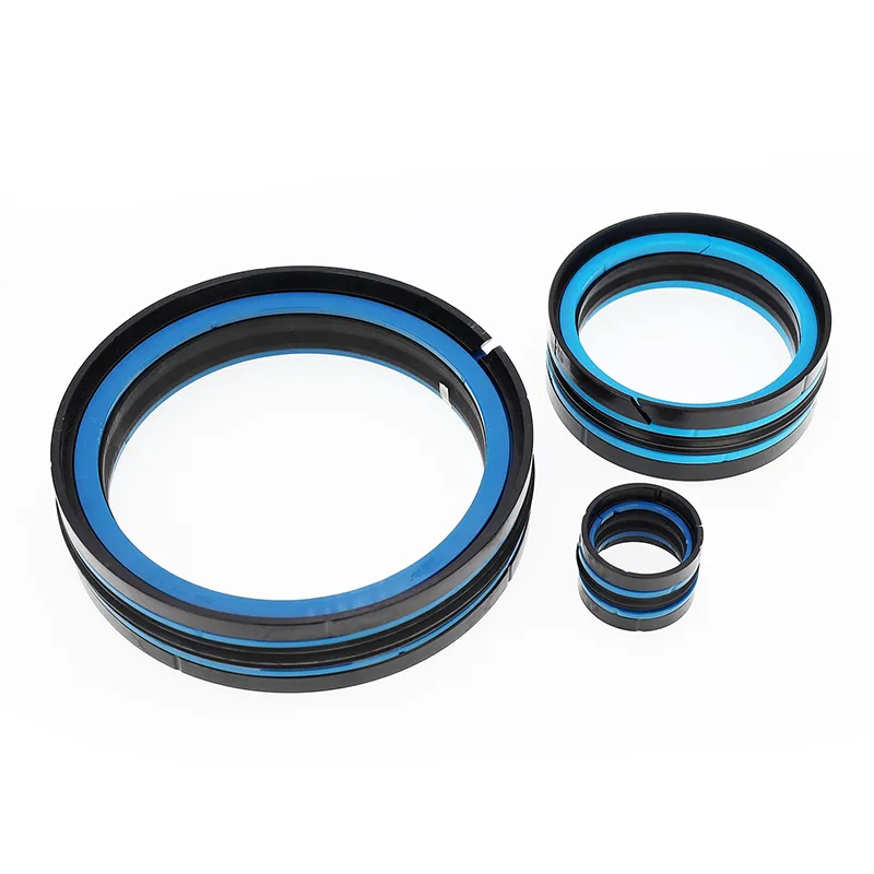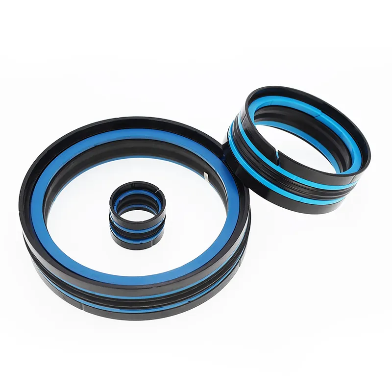Ang selyo ng KDAS compound ay isang limang-sangkap na compression-type na piston seal assembly na binubuo ng isang elemento ng sealing ng goma, dalawang retaining singsing, at dalawang gabay na singsing. Ito ay angkop para sa bidirectional pressure piston sealing.
