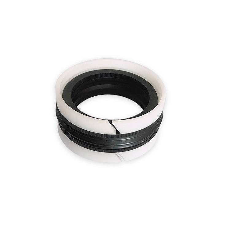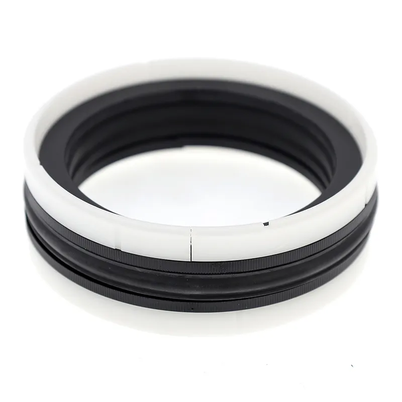 Ang selyo ng TPM Combined Piston (Bore) ay isang limang-bahagi na compression piston seal assembly na binubuo ng isang profile na elemento ng sealing ng goma, dalawang retaining singsing, at dalawang gabay na singsing. Ang disenyo ng uka nito ay epektibong pinipigilan ang pagbaluktot sa panahon ng pagpupulong at angkop para sa bidirectional pressure piston sealing.