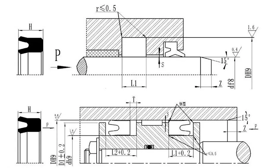 Ang UHS U-Seal ay isang simetriko na selyo para sa parehong mga aplikasyon ng bore at shaft. Mayroon itong isang mas maliit na cross-section at maaaring mai-install sa mga integral na grooves. Ang isang retaining ring ay kinakailangan sa ugat kapag ginamit sa ilalim ng mga panggigipit ng 16-32 MPa.